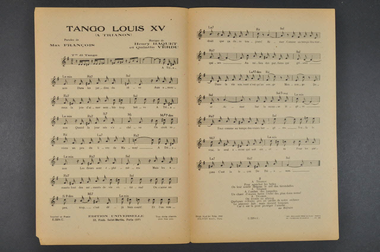 chanson, petit format, partition de musique, Tango Louis XV (à Trianon)