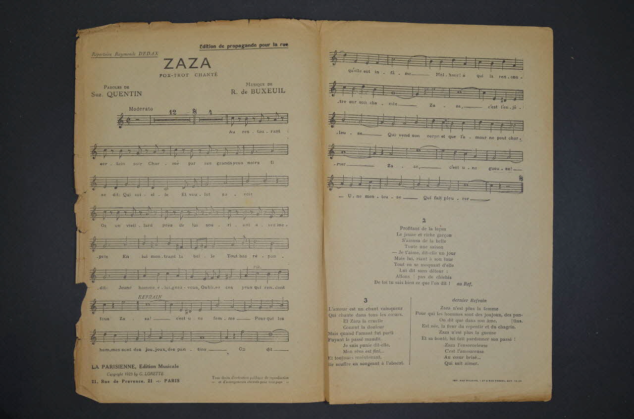 chanson, petit format, partition de musique, Zaza