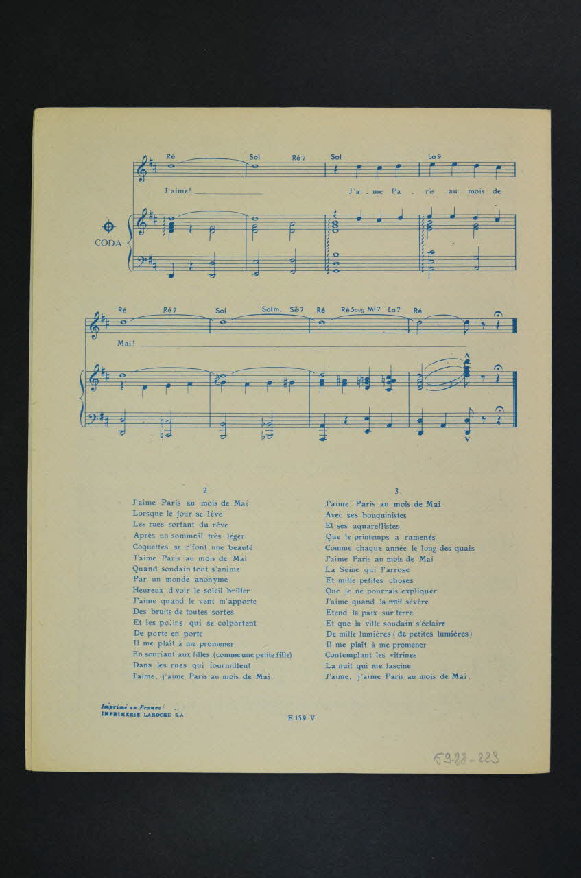 chanson, petit format, partition de musique, J'aime Paris au mois de Mai