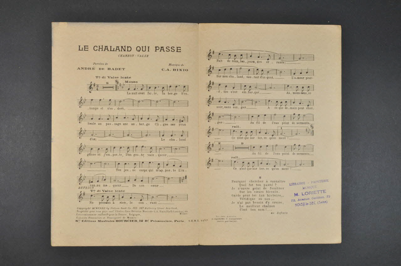 chanson, partition de musique, petit format, Le chaland qui passe