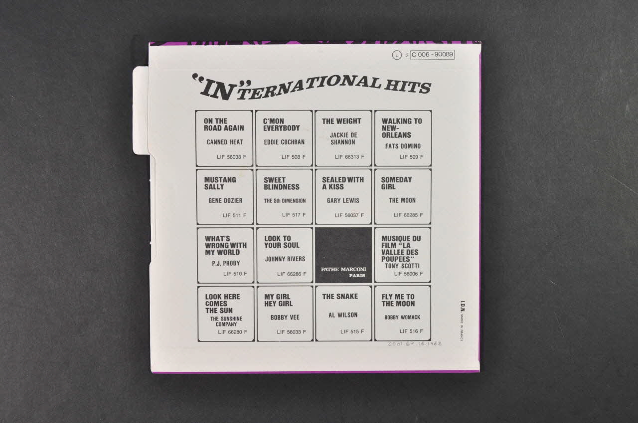 La pochette de disque est de forme carrée et comporte une petite languette. Elle présente au recto, la photographie d'un groupe de cinq personnes,en noir et blanc et encadré de motifs noirs sur fond violet. Les inscriptions sont en caractères blancs et noirs.