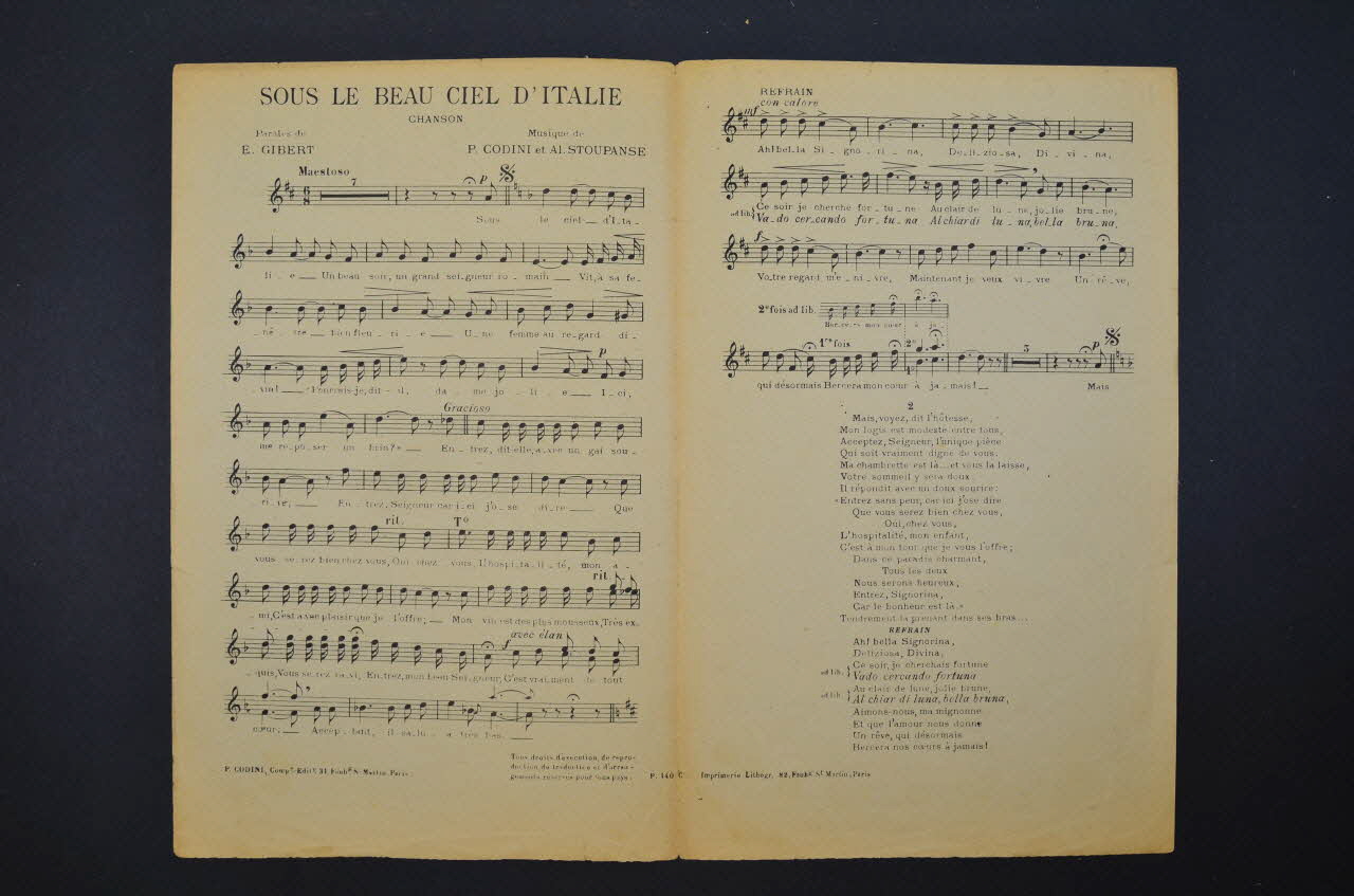 chanson, partition de musique, petit format, Sous le beau ciel d'Italie