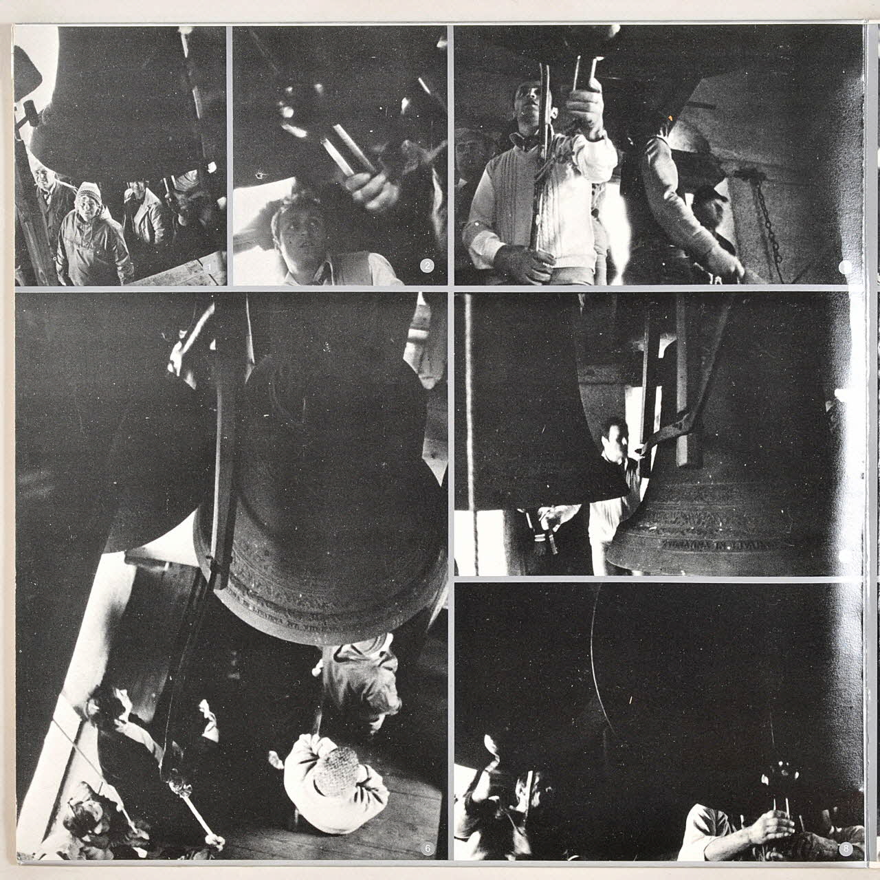 La pochette argentée du disque présente, au recto, une photographie couleur montrant deux sonneurs de cloche en action.