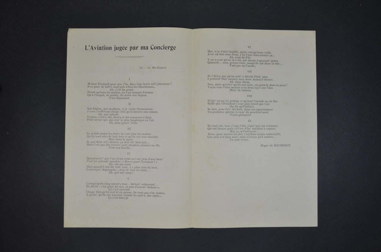 chanson, partition de musique, petit format, L'aviation jugée par ma concierge