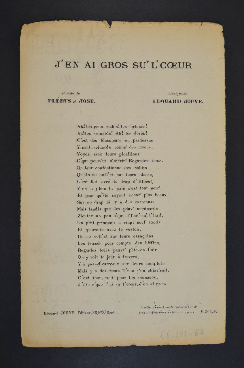 chanson, petit format, partition de musique, J'en ai gros su'l'coeur
