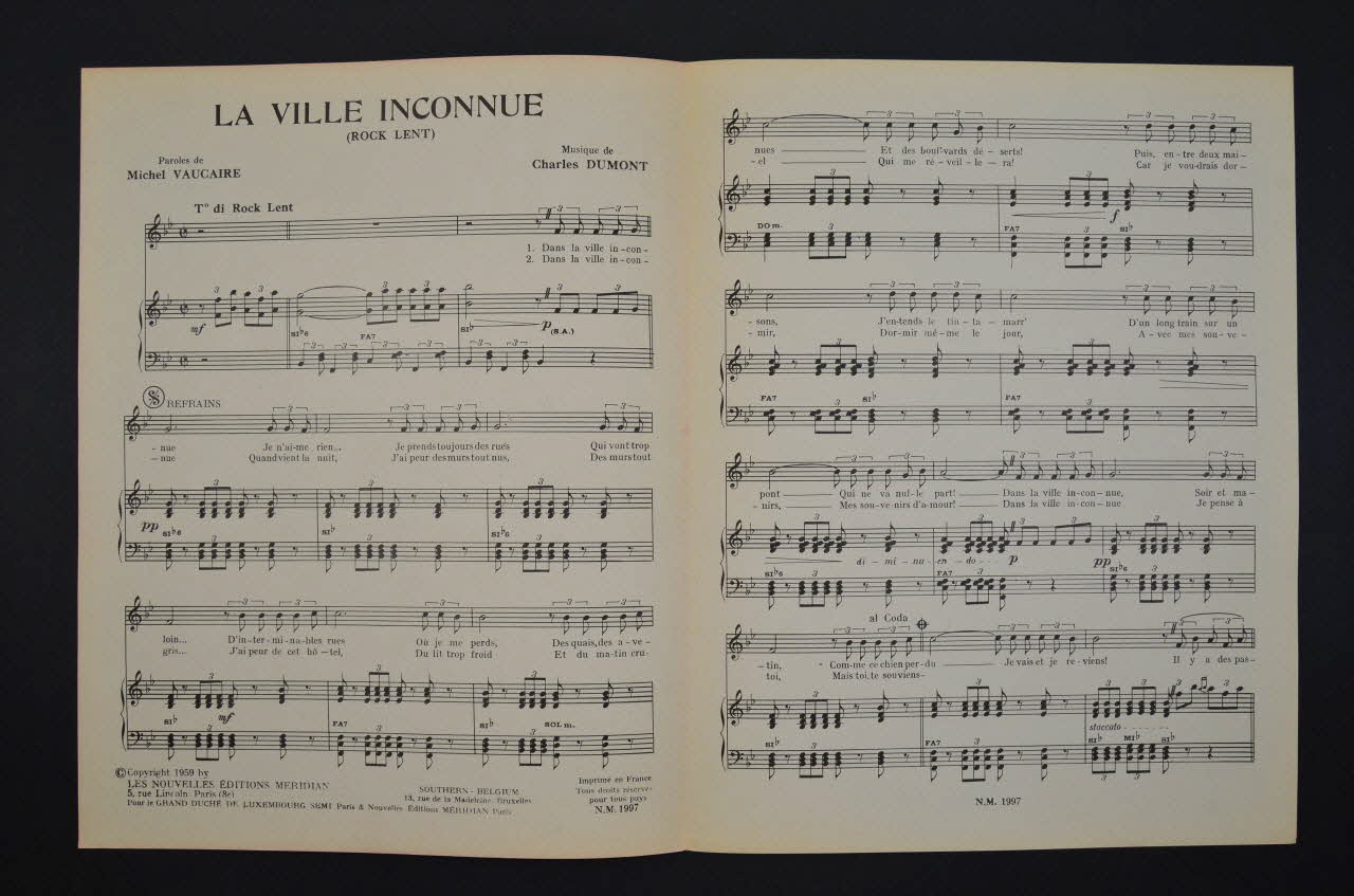 Des inscriptions renseignent le titre, les auteurs, les exécutants et l'éditeur. A l'intérieur et au dos, la partition et les paroles de la chanson.Décor
