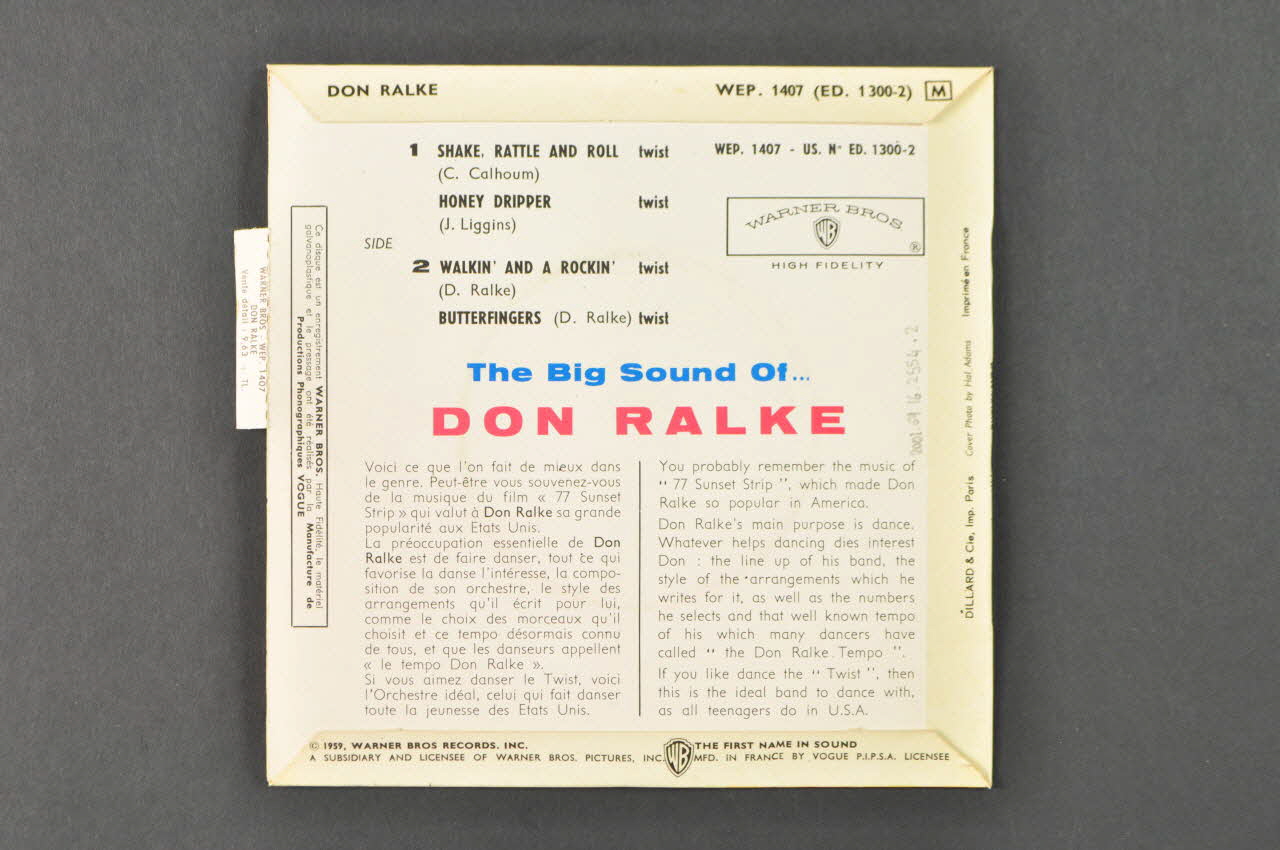 Le disque rond et noir comporte une perforation circulaire au centre. Une étiquette rouge contenant le nom du chanteur, le titre des chansons, le logo de l'éditeur ainsi que d'autres inscriptions en noir est collée au centre.