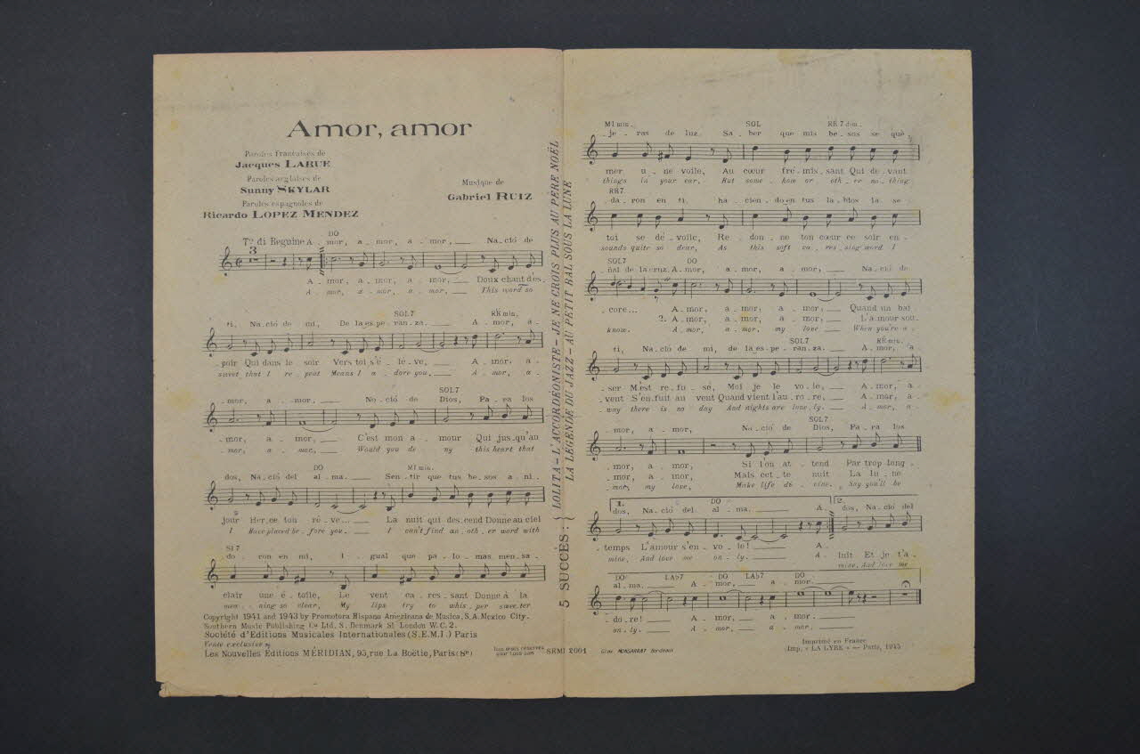 chanson, partition de musique, petit format, Amor Amor