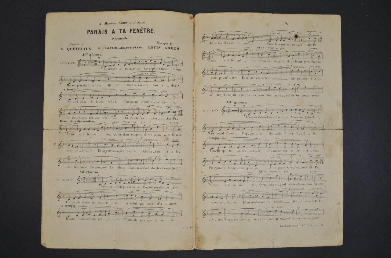 chanson, petit format, partition de musique, Parais à ta fenêtre