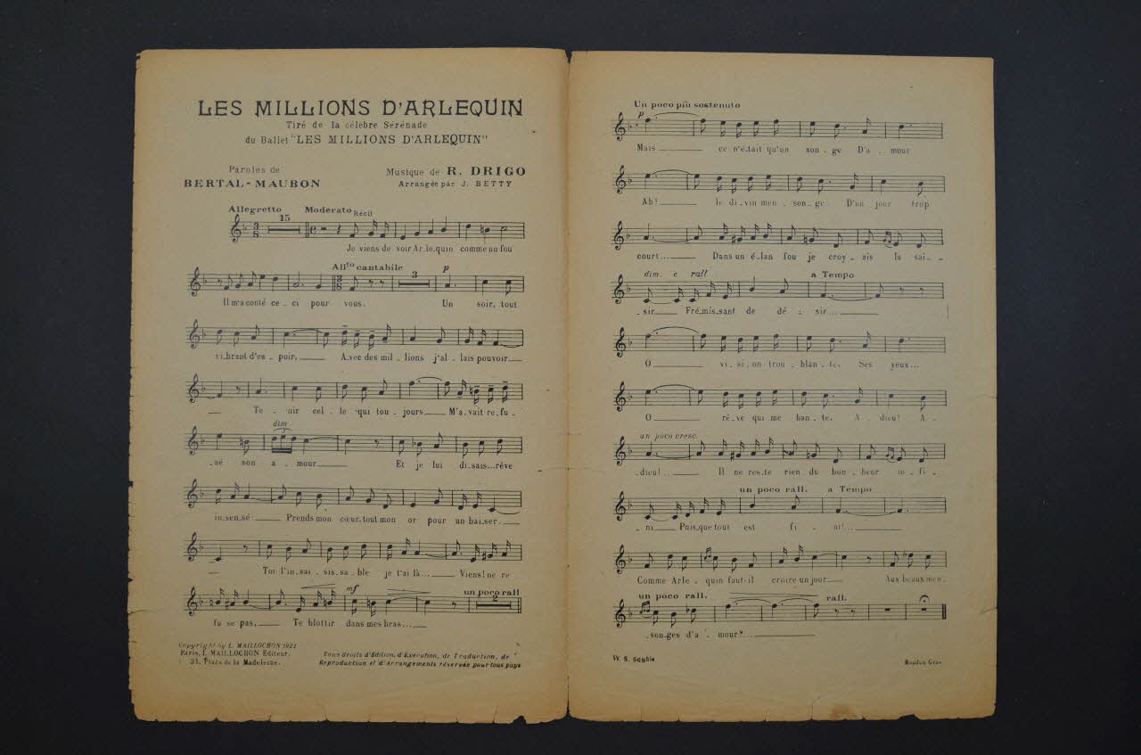 chanson, partition de musique, petit format, Les millions d'Arlequin