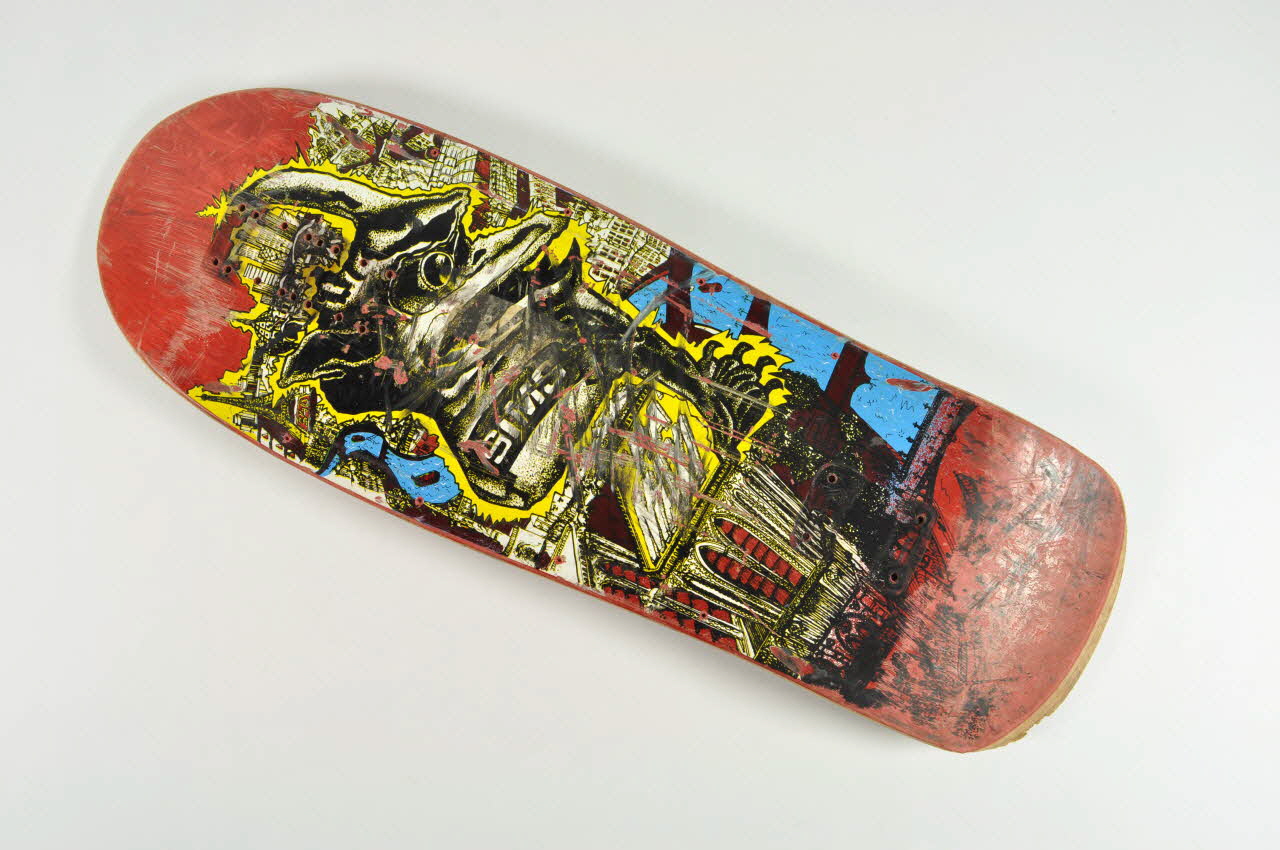 Sous la planche, le film déco présente un fond rouge avec un dessin de la ville de Paris vu de haut, dans les tons blanc et jaunes. A l'arrière plan, la tour Eiffel. Au premier plan, une tour de Notre-Dame de Paris. Une gargouille est représentée en très grande taille, perchée sur le bord de la tour.