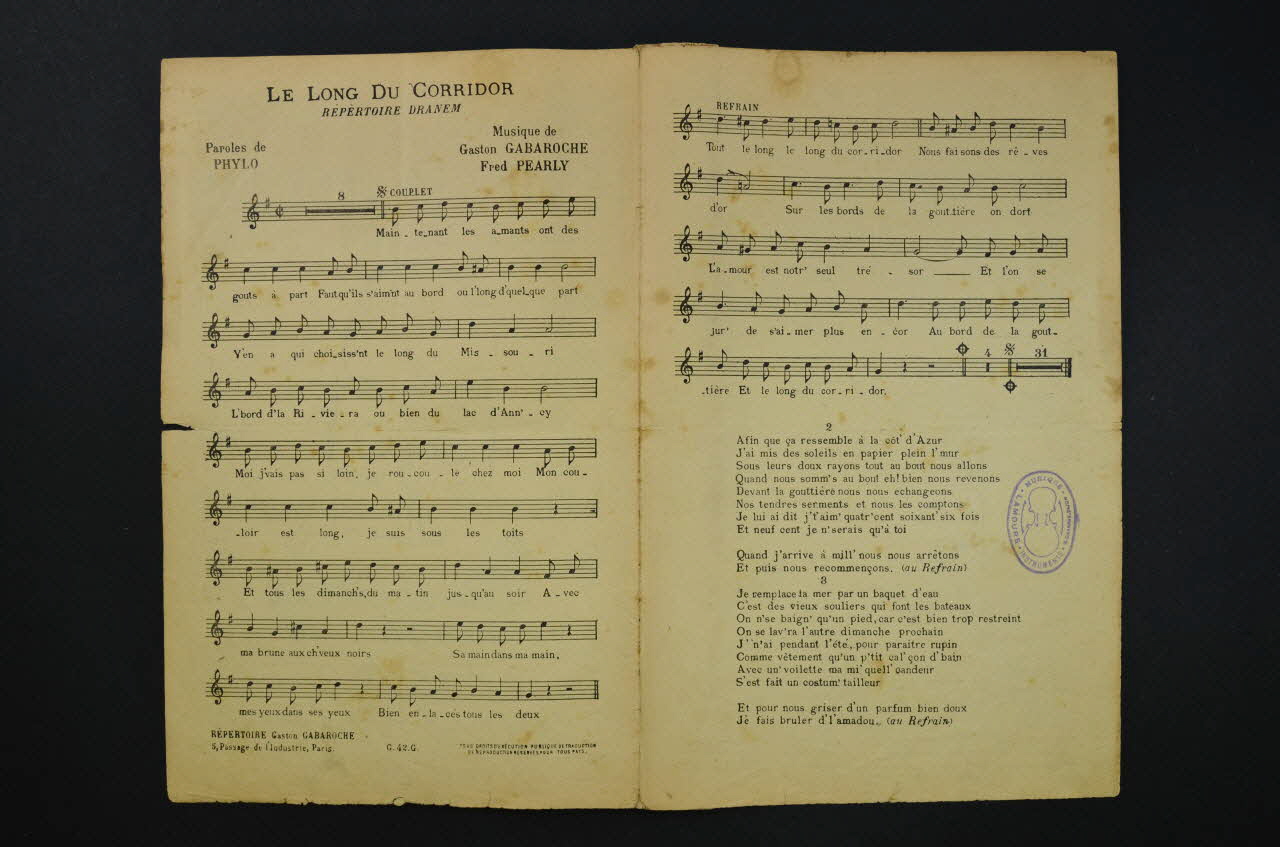 chanson, petit format, partition de musique, Le long du corridor