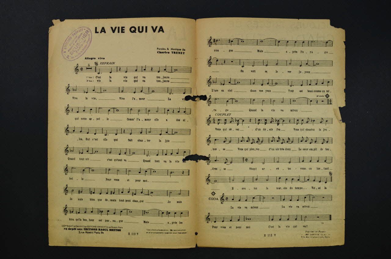 chanson, partition de musique, petit format, La vie qui va
