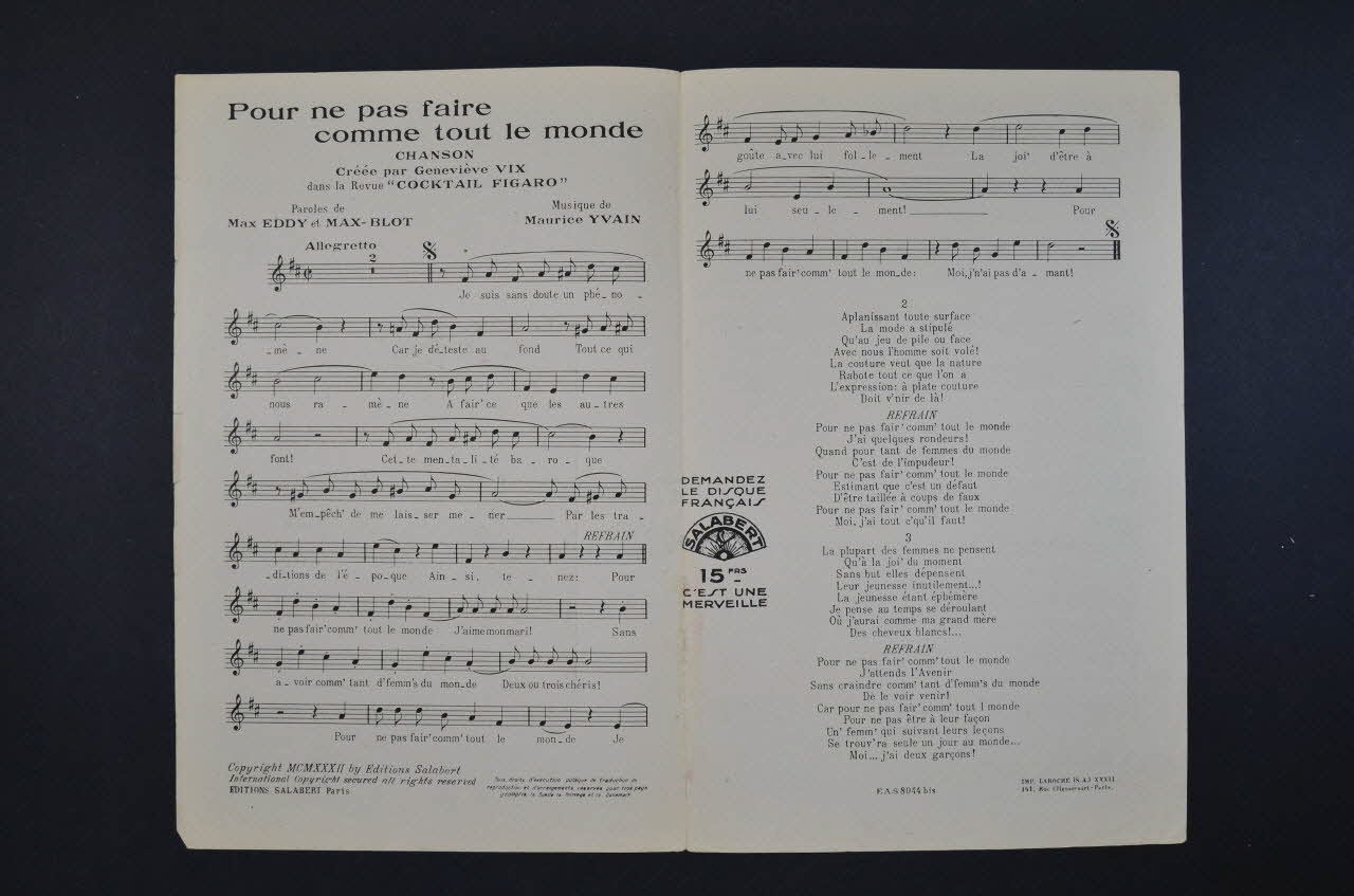chanson, petit format, partition de musique, Pour ne pas faire comme tout le monde