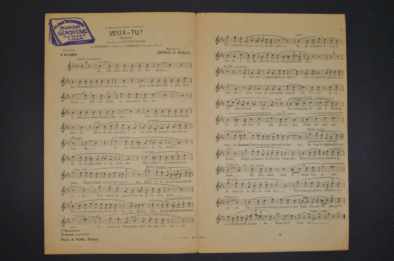 chanson, petit format, partition de musique, Veux-tu ?