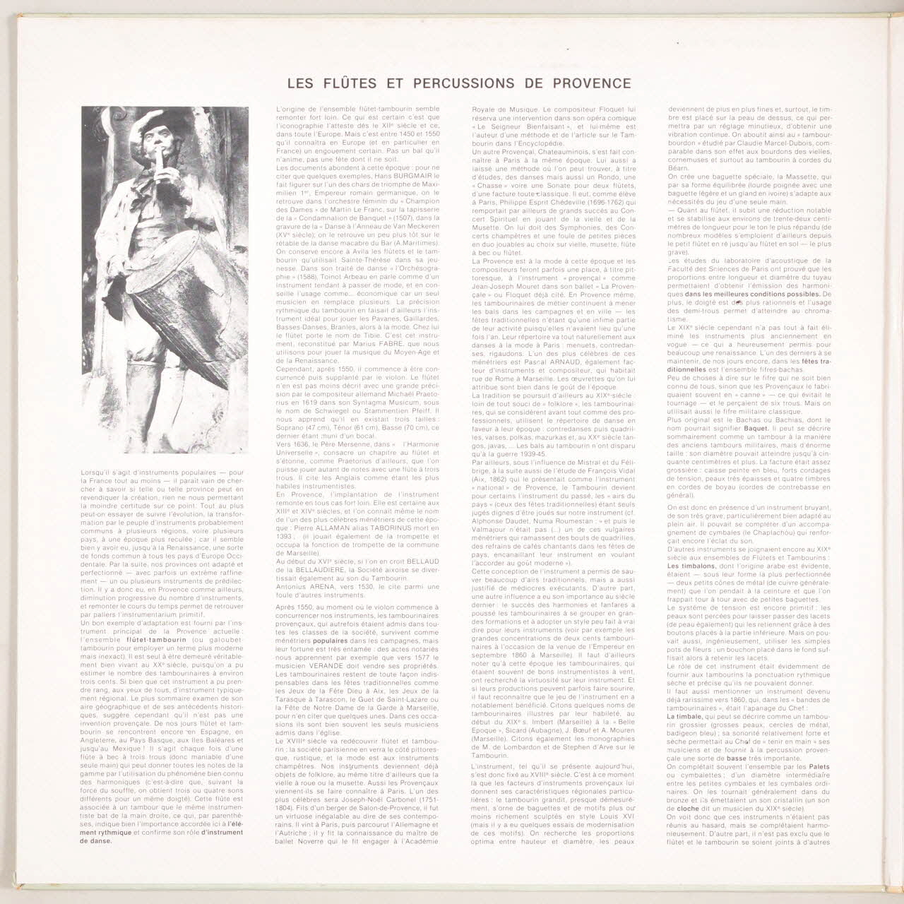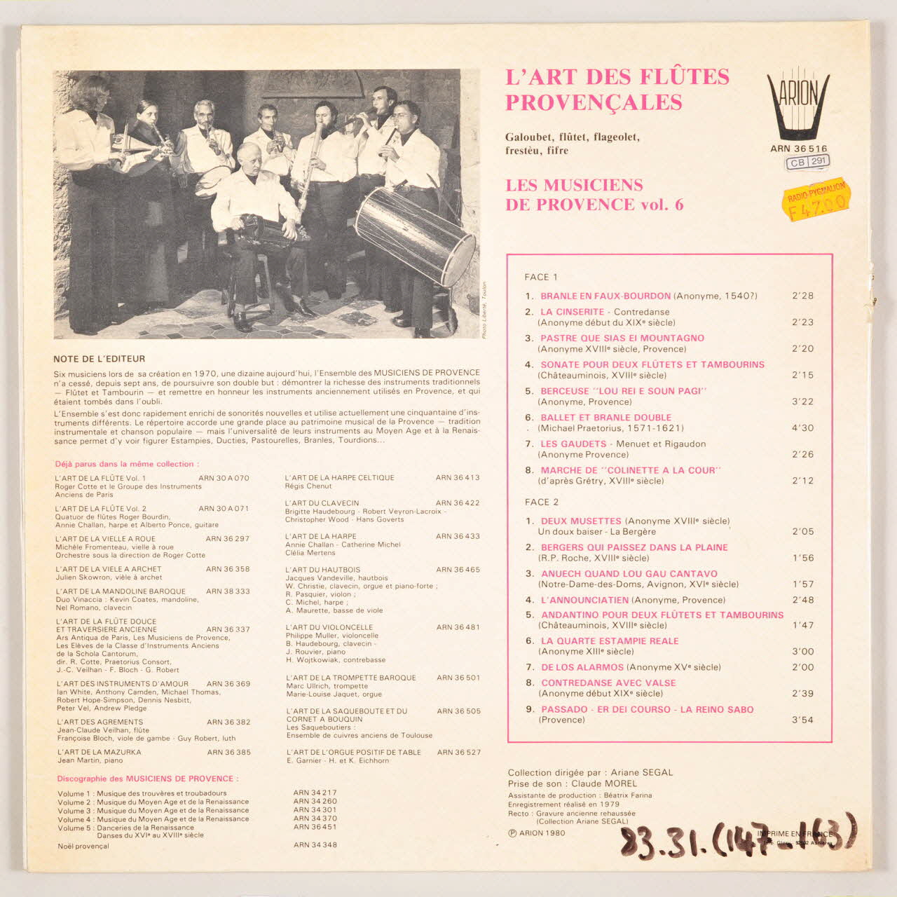 Au dos, présentation des titres et photographie des musiciens de Provence.