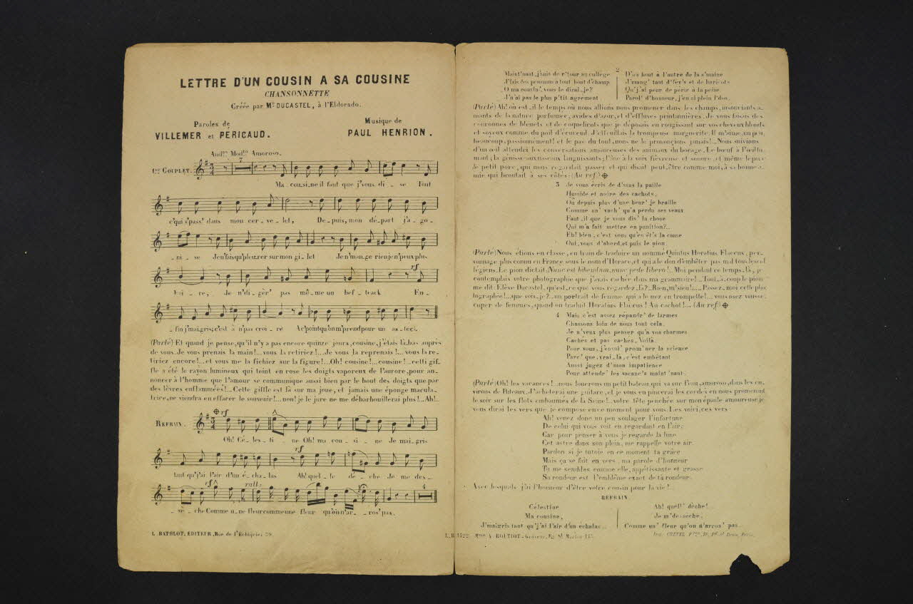 chanson, partition de musique, petit format, Lettre d'un cousin à sa cousine