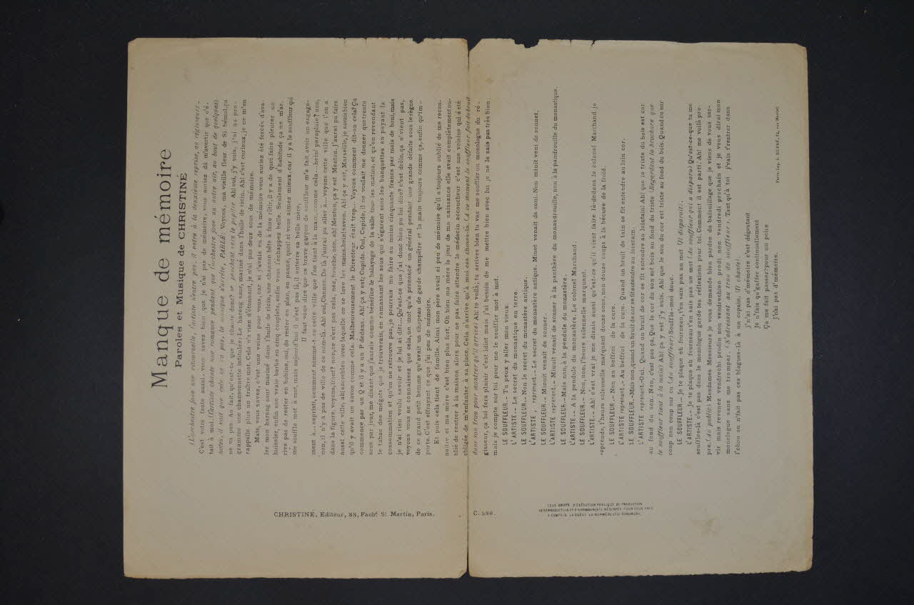 chanson, partition de musique, petit format, Manque de mémoire