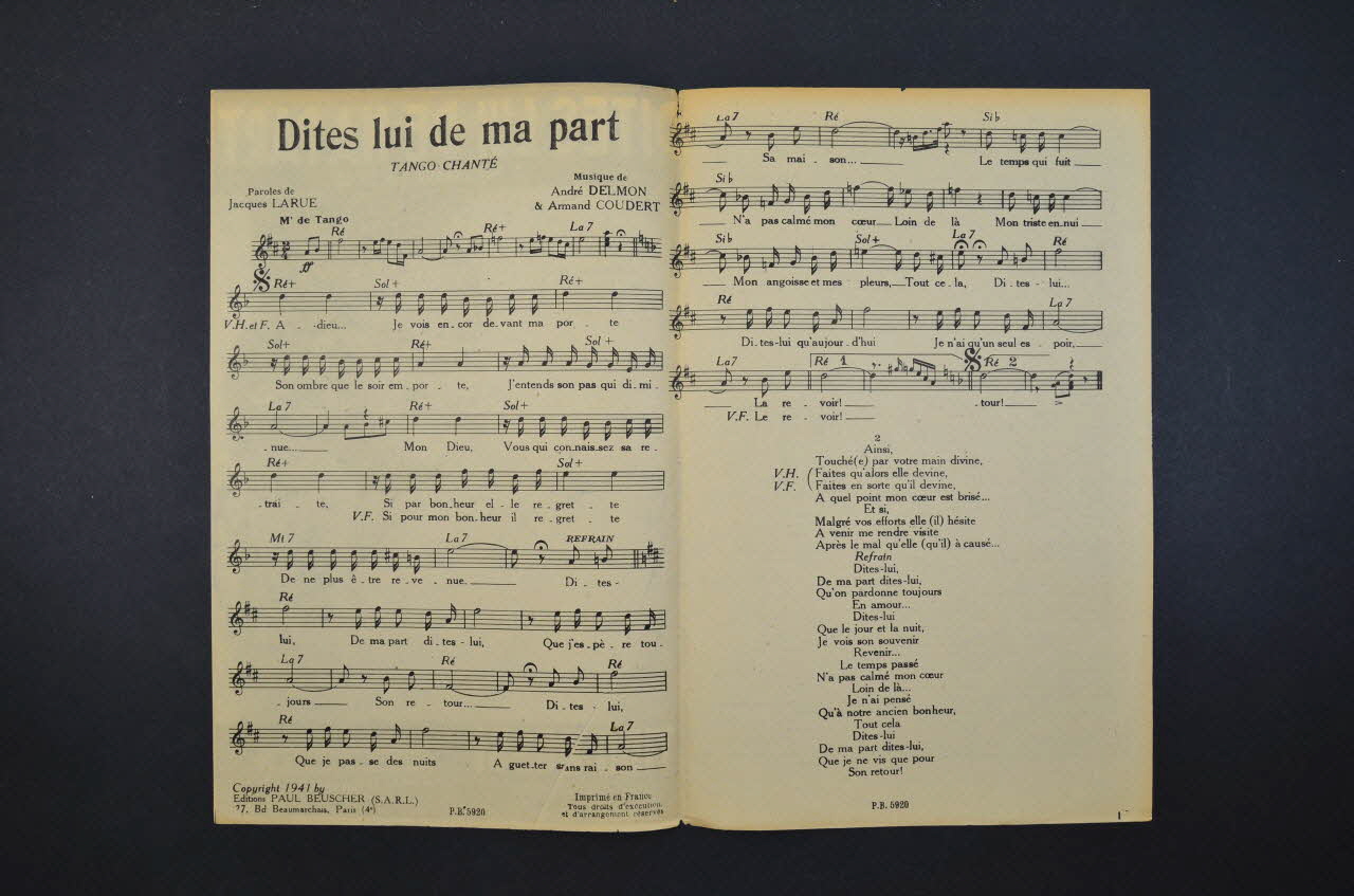 chanson, petit format, partition de musique, Dites lui de ma part