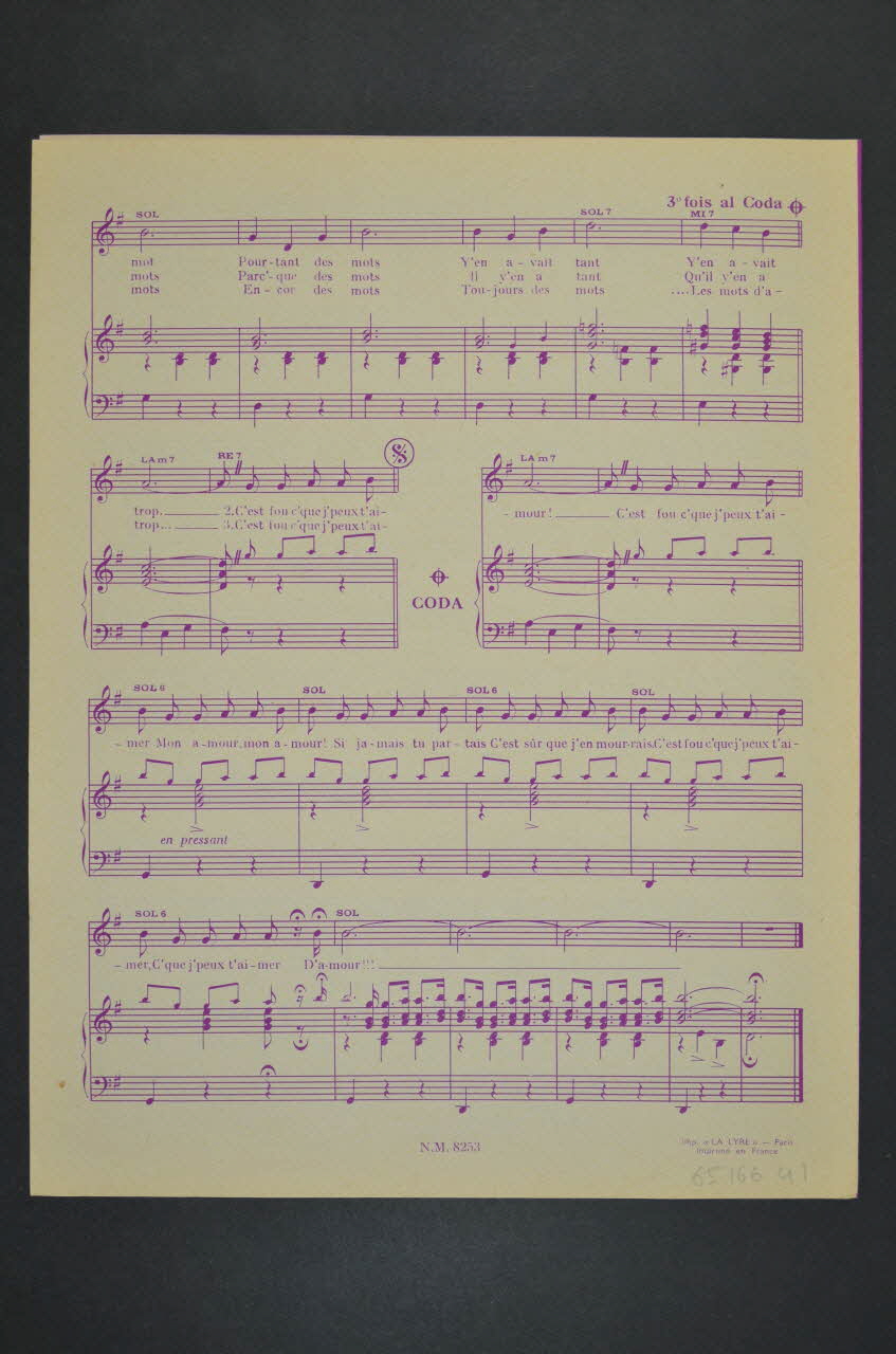 chanson, partition de musique, petit format, Les mots d'amour