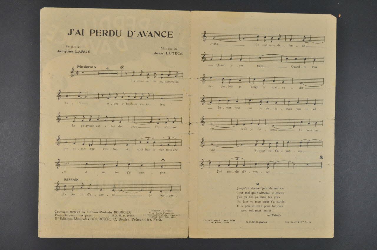 chanson, petit format, partition de musique, J'ai perdu d'avance