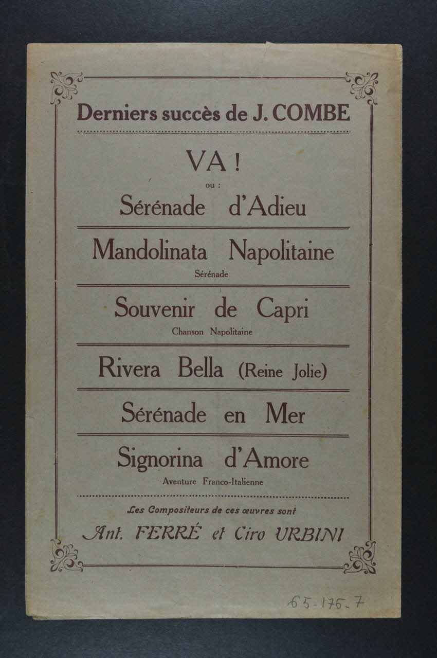 A l'intérieur, partition et paroles de la chanson. Au dos, liste d'autres partitions publiées par l'éditeur.Matériaux et techniques