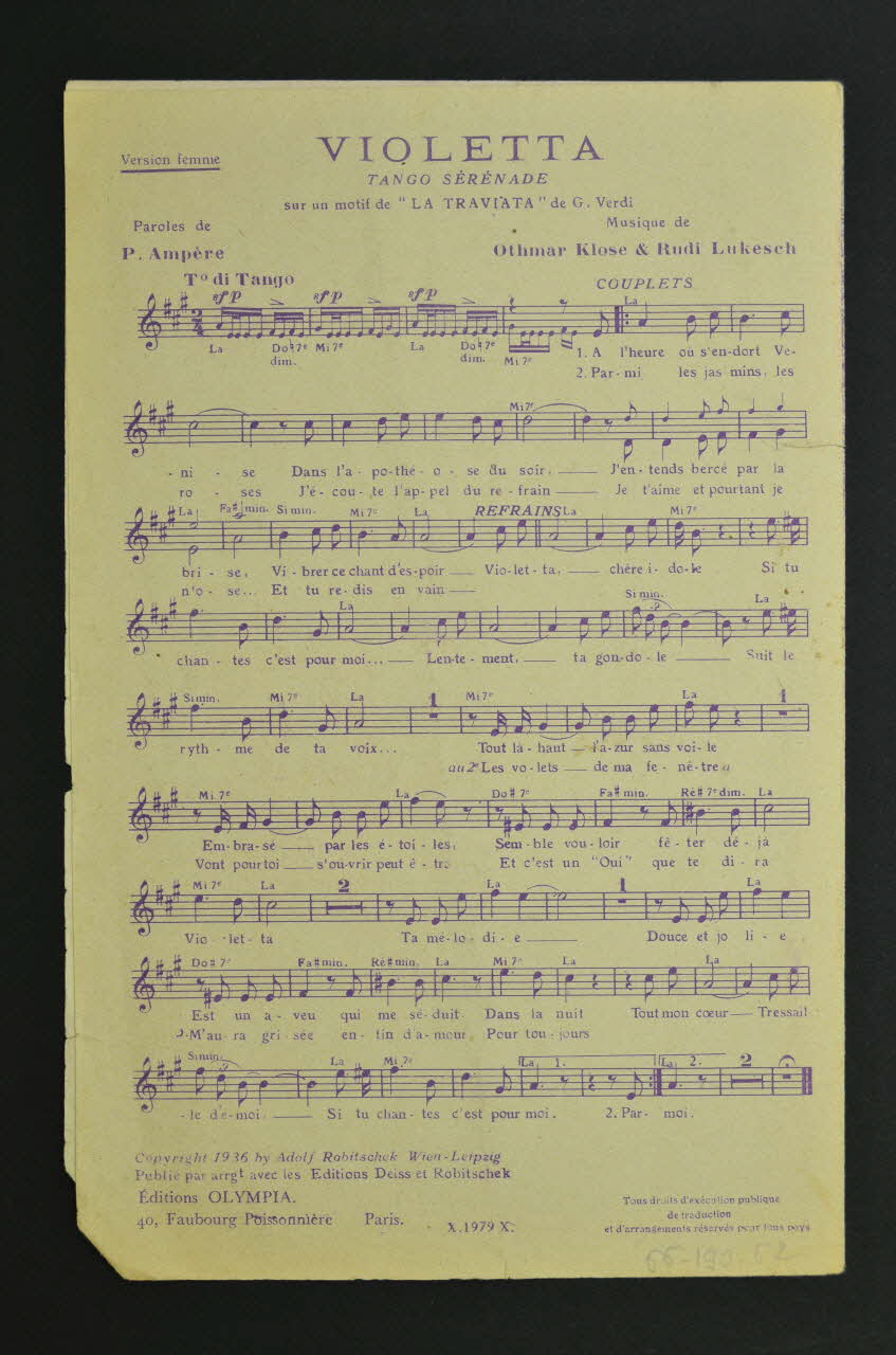 chanson, partition de musique, petit format, Violetta