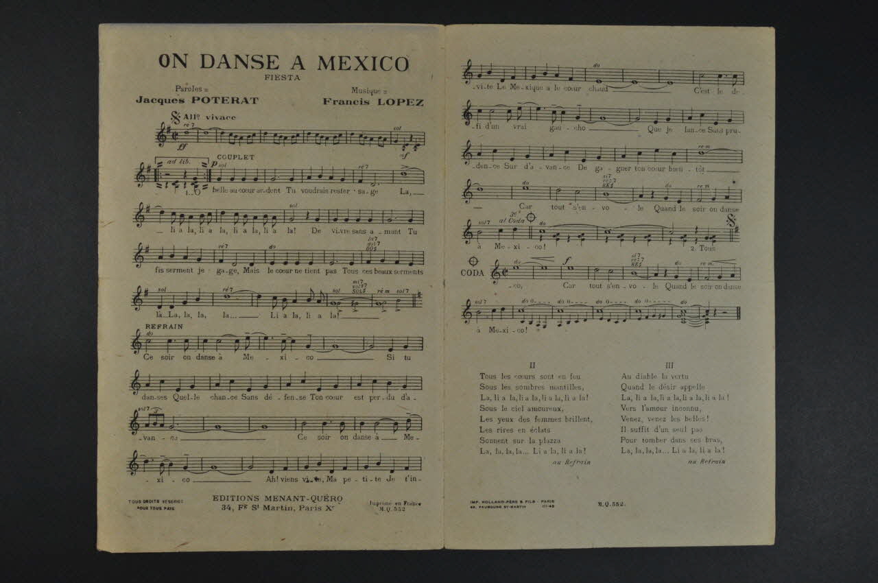 chanson, petit format, partition de musique, On danse à Mexico