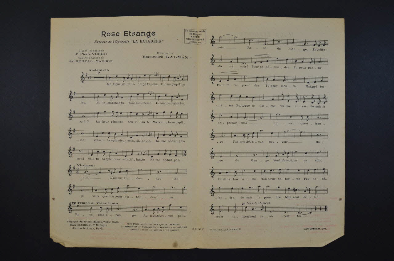 chanson, partition de musique, petit format, Rose étrange, La Bayadère