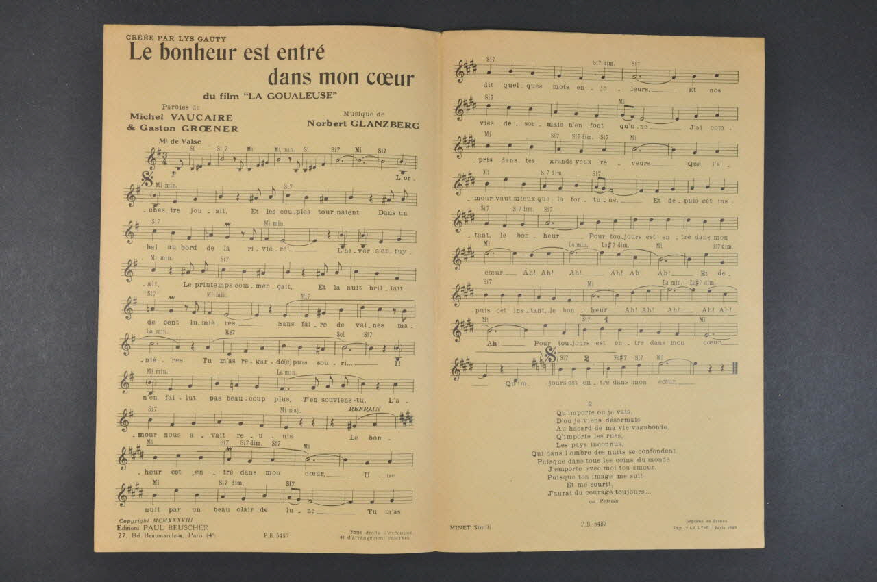 chanson, partition de musique, petit format, Le bonheur est entré dans mon coeur, La Goualeuse
