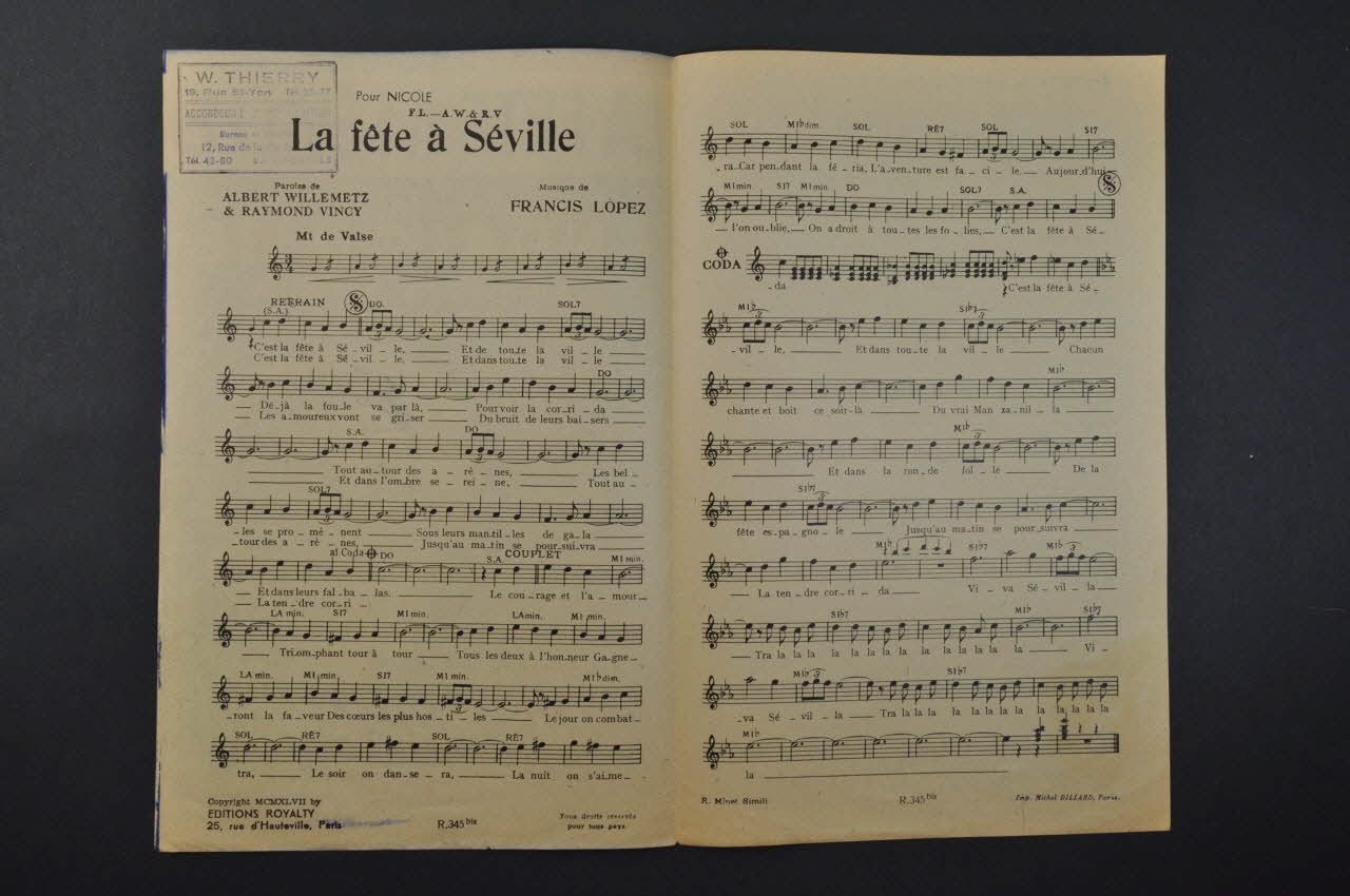 chanson, partition de musique, petit format, La fête à Séville
