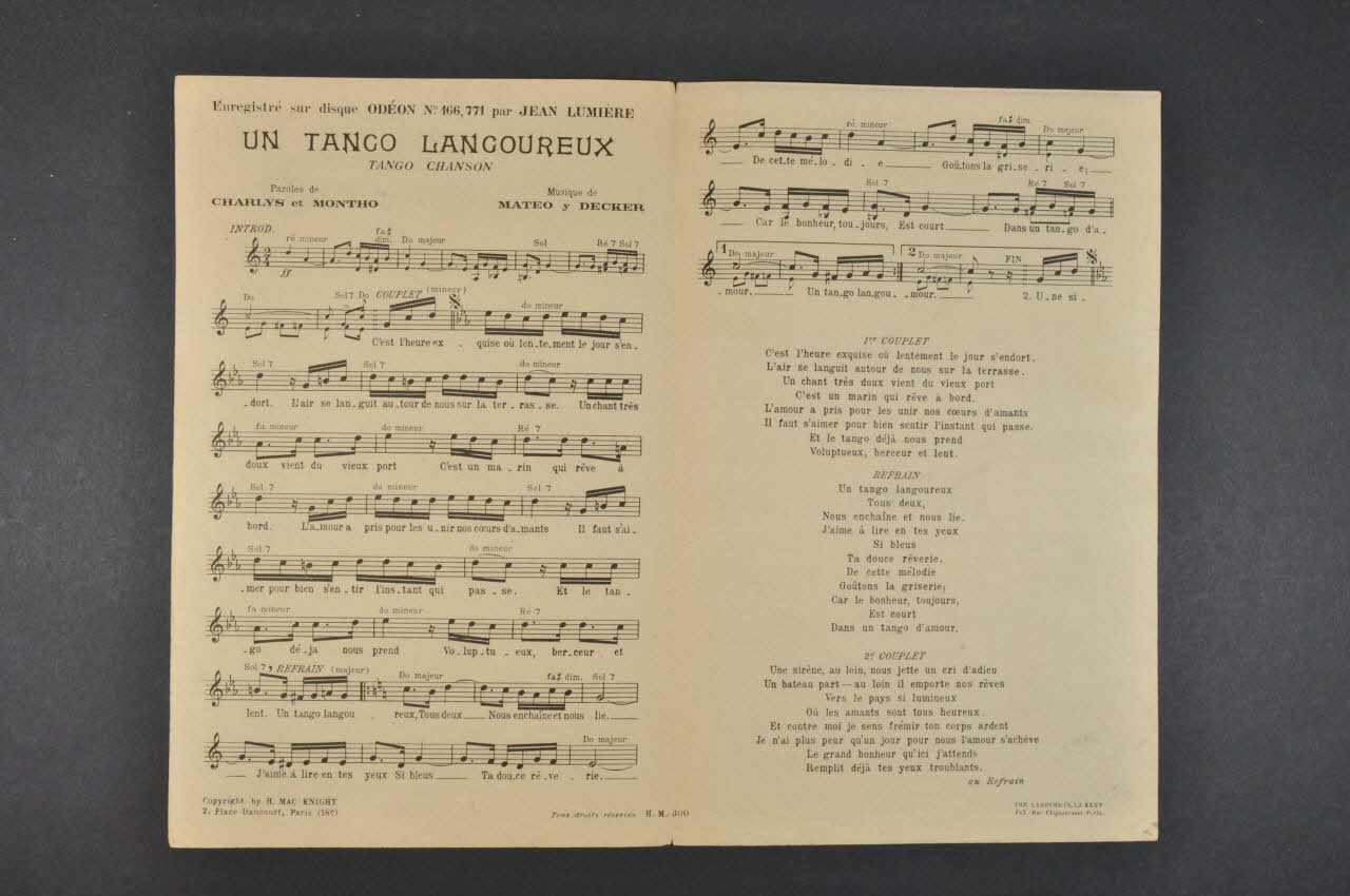 chanson, partition de musique, petit format, Un tango langoureux
