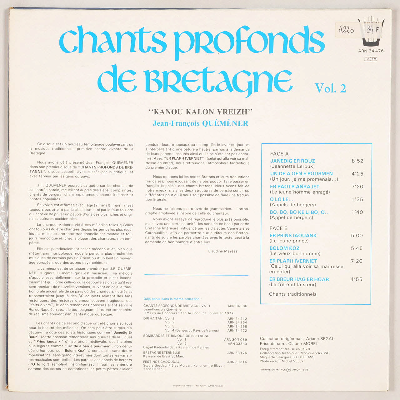 disque 33 tours, O lo le..., Er breur hag er hoar, Janedig er rouz, Bo, bo, bo ke li bo, o...., Bolom koz, Chants profonds de Bretagne, Er prins yaouank, Un de a oen e pourmen, Er plarh iverniet, Er paotr anrajet