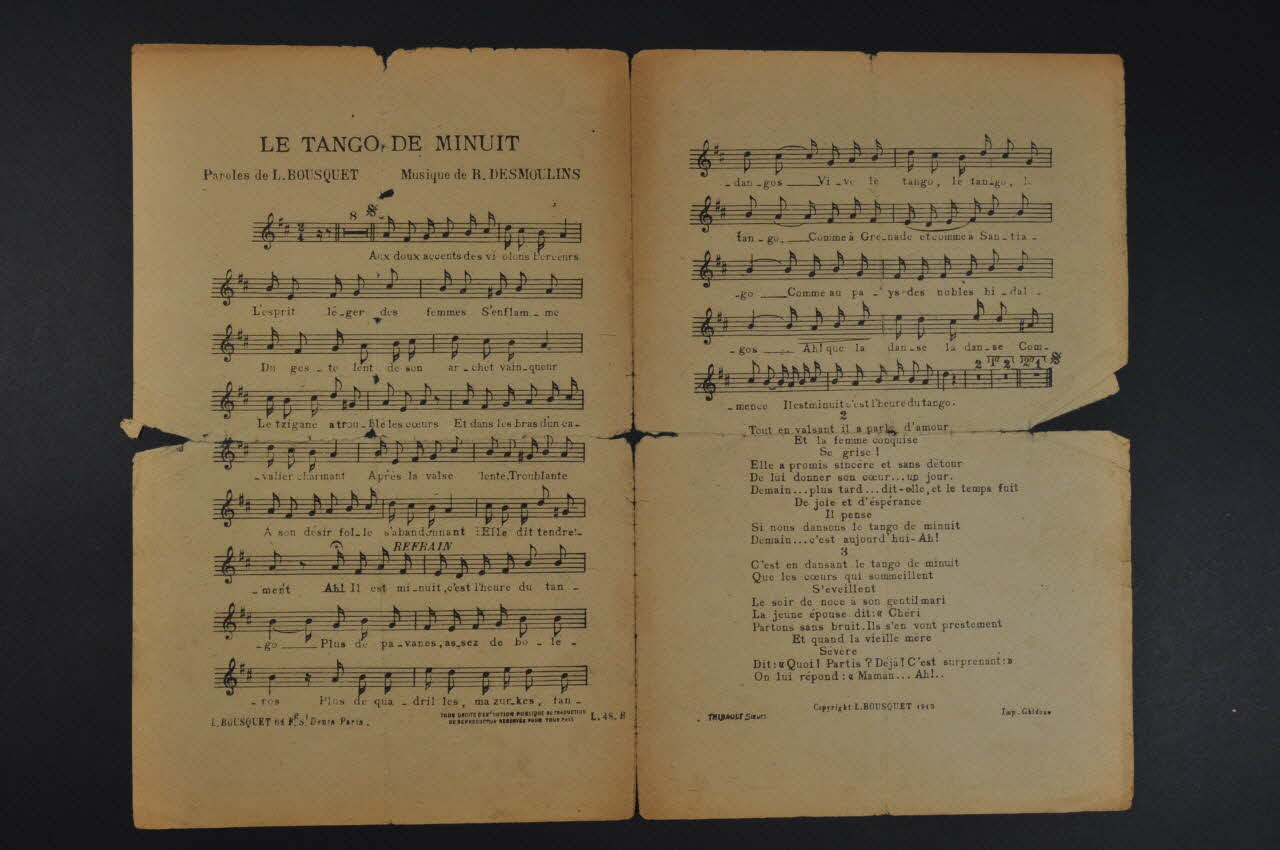 chanson, petit format, partition de musique, Le tango de minuit
