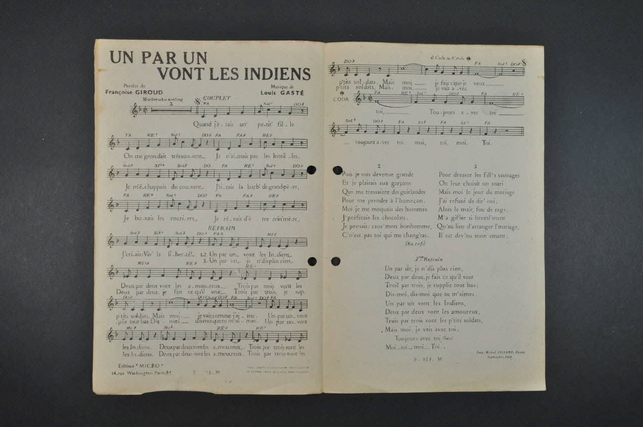 chanson, petit format, partition de musique, Un par un vont les indiens