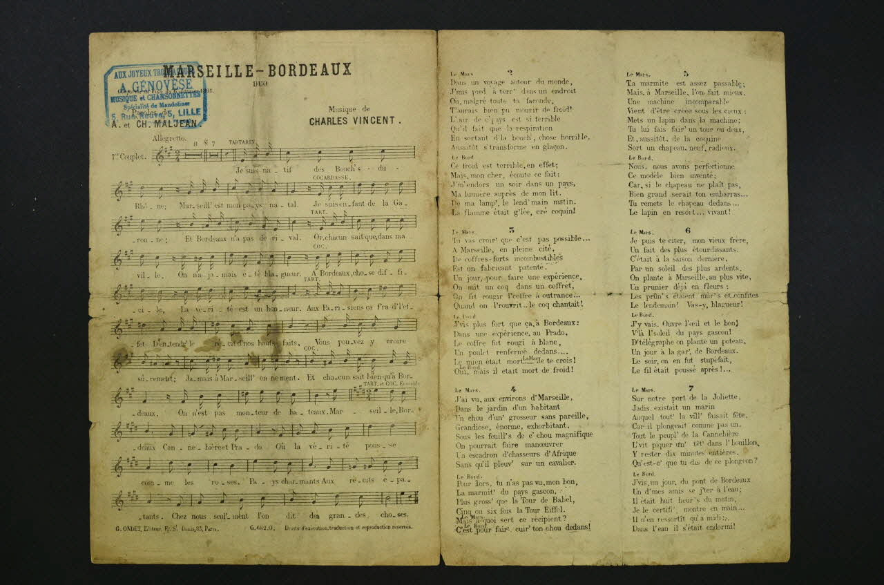 chanson, partition de musique, petit format, Marseille -Bordeaux
