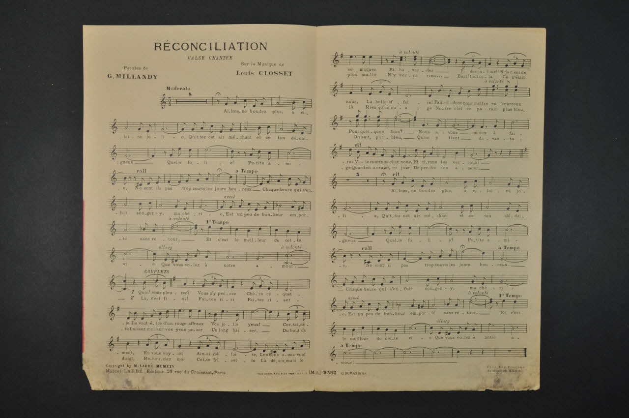 chanson, partition de musique, petit format, Réconciliation