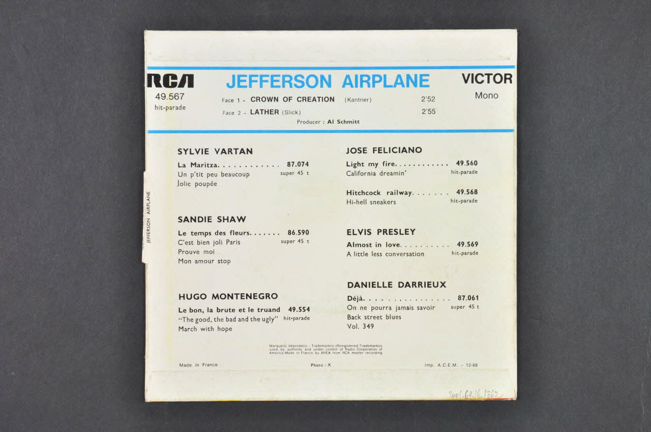 Il s'agit d'une pochette carrée, en carton, imprimée en couleur, pliée et collée. Les inscriptions sont en anglais. Au milieu, à droite se trouve une étiquette rectangulaire, saillante.