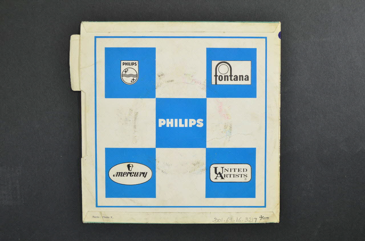 Cette pochette en papier, pliée et collée, est de forme carré. Une petite languette bleue se trouve dans le haut de la bordure droite.
