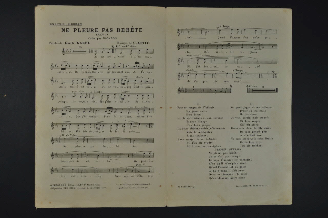 chanson, partition de musique, petit format, Ne pleure pas Bébête