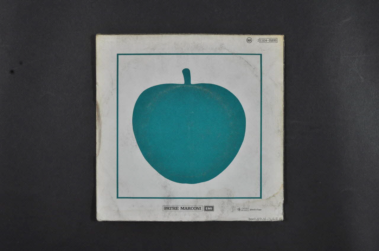 Le recto de la pochette est illustrée d'une photographie noir et blanc avec en sur impression des inscriptions en rouger et vert. Au dos, sur fond blanc, est imprimée une pomme verte encadré d'un liseré vert. La pochette contient un disque vinyle (.1) avec une étiquette verte, illustrée d'une moitié de pomme, portant des inscriptions en verte des deux côtés.Matériaux et techniques