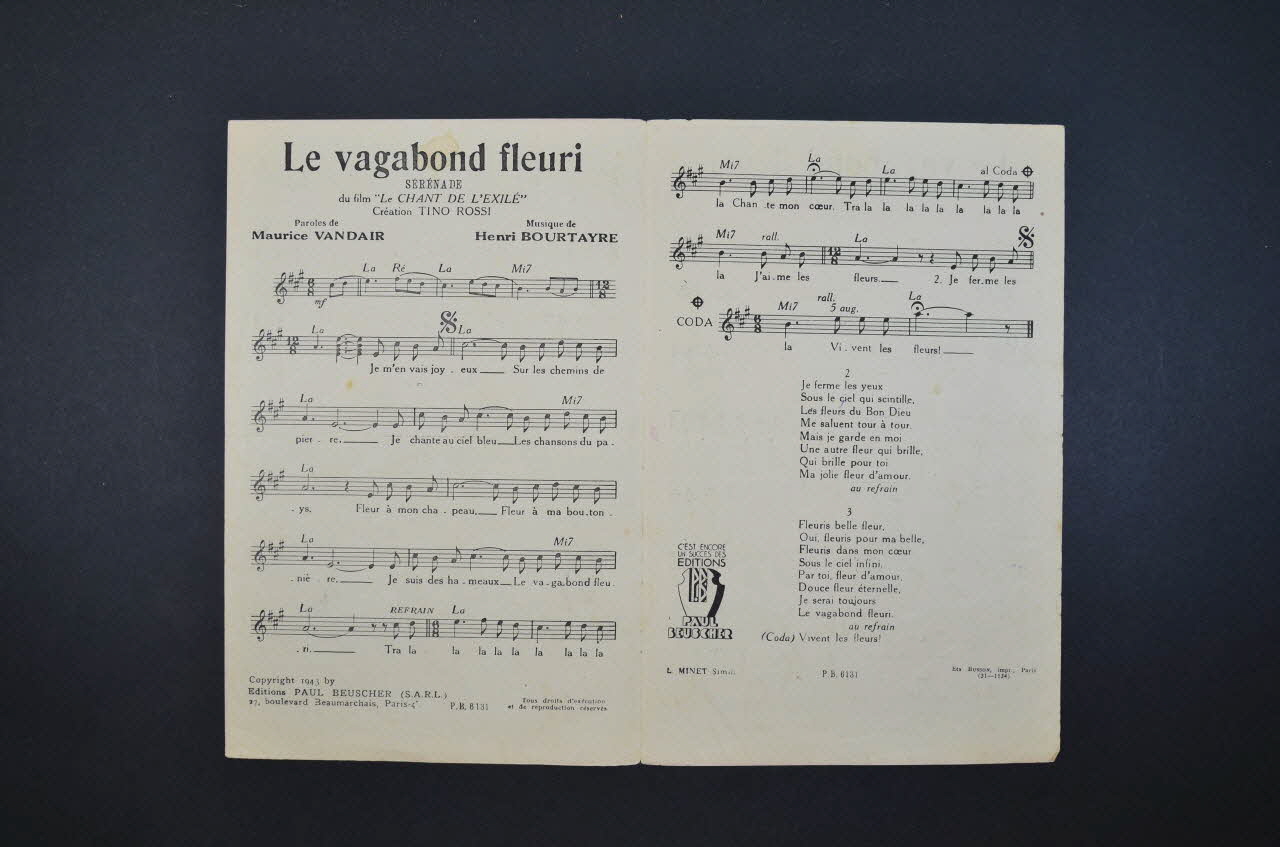 chanson, petit format, partition de musique, Le vagabond fleuri, Le chant de l'exilé