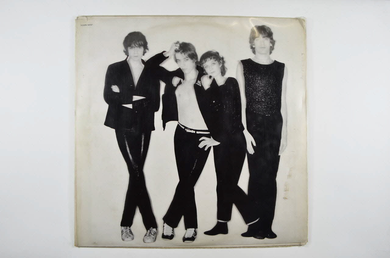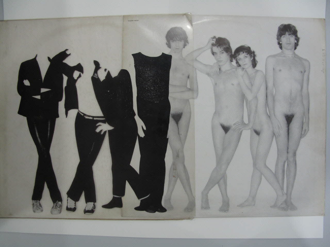 .2 : Pochette en carton et plastique, de forme carrée, pliée et collée. La face constitué de plastique imprimé présente quatre modèles de vêtements noirs. Le revers constitué de carton, se compose d'un fond gris avec les titres des chansons imprimés en noir. .3 La sous pochette est en papier imprimé noir et blanc. Elle présente sur une face les quatre membres du groupe nus. Le revers est composé d'une photographie des différents textes des chansons imprimés sur des papiers froissés.Matériaux et techniques