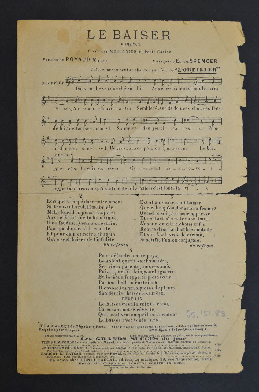 chanson, partition de musique, petit format, Le baiser