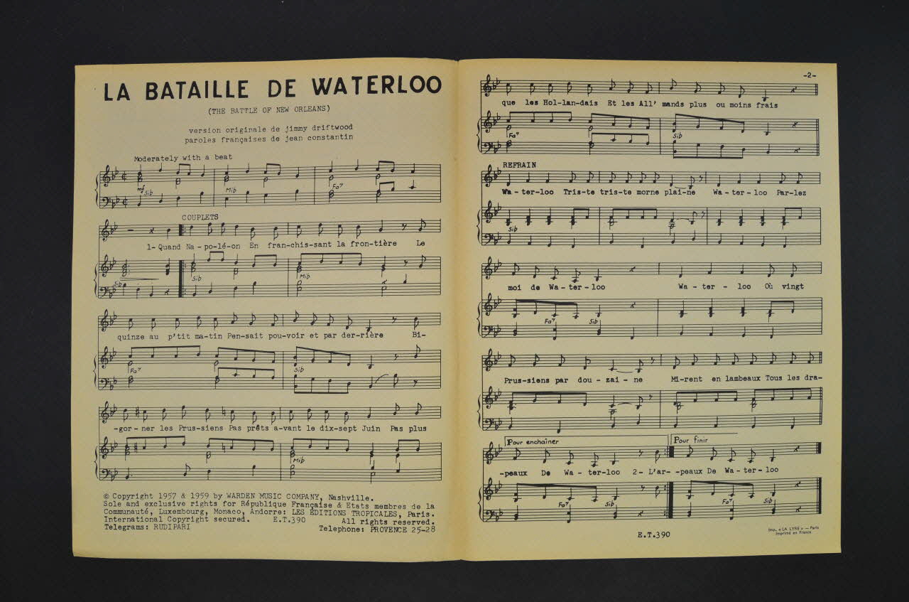 partition de musique, chanson, petit format, La bataille de Waterloo