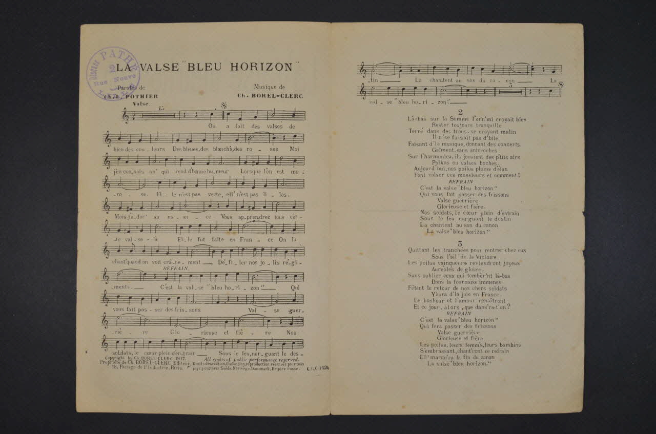chanson, petit format, partition de musique, Bleu horizon