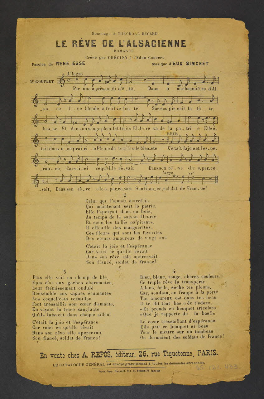 chanson, partition de musique, petit format, Le Rêve de l'Alsacienne