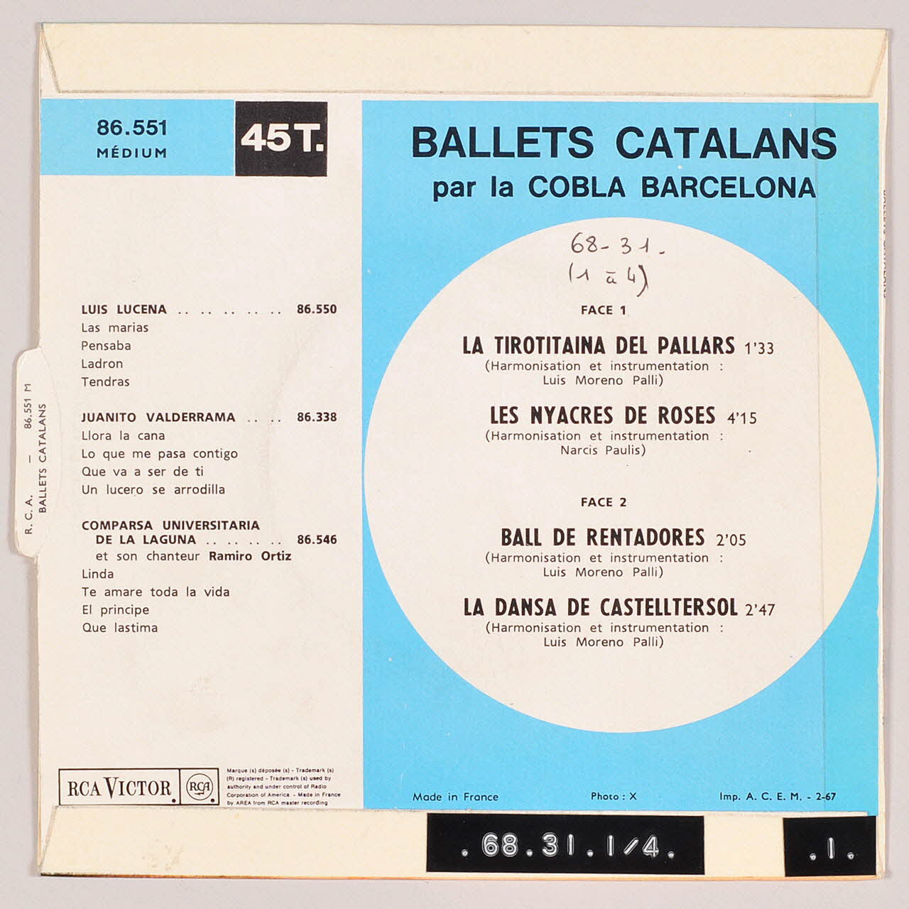 disque 45 tours, La dansa de Castelltersol, Les Nyacres de roses, La Tirotitaina del Pallars, Ballets catalans, Ball de Rentadores