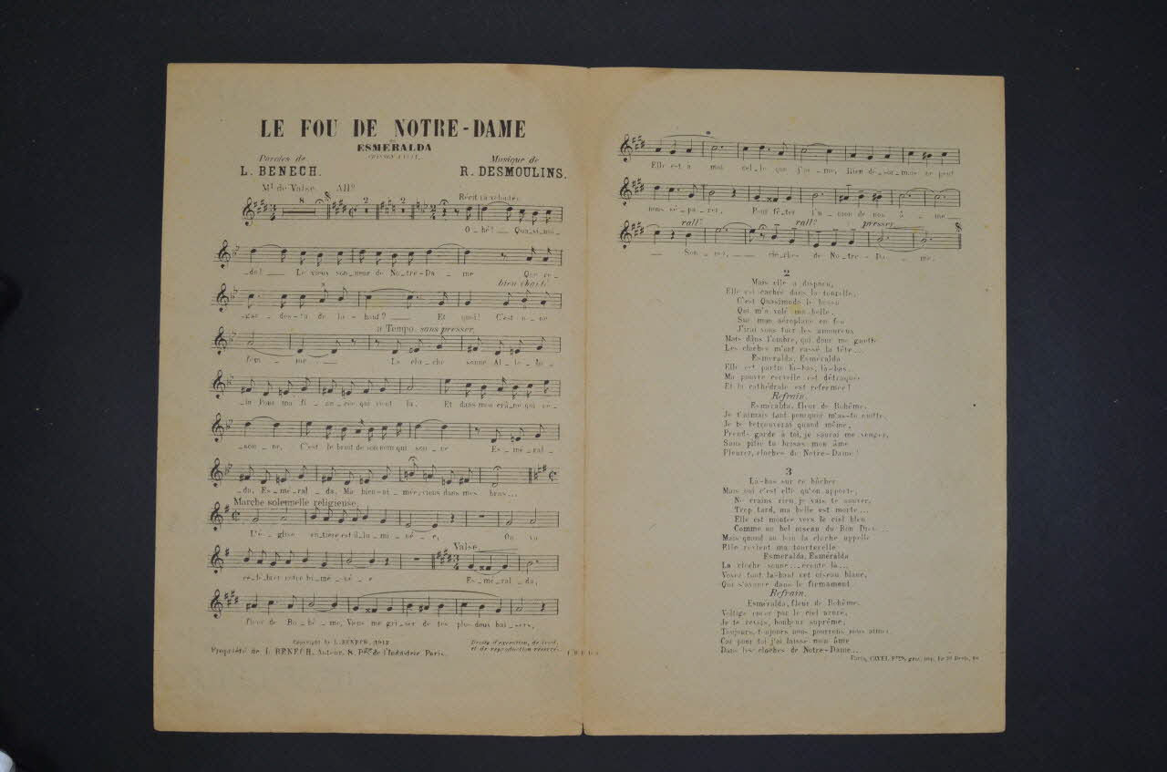 chanson, partition de musique, petit format, Le Fou de Notre-Dame