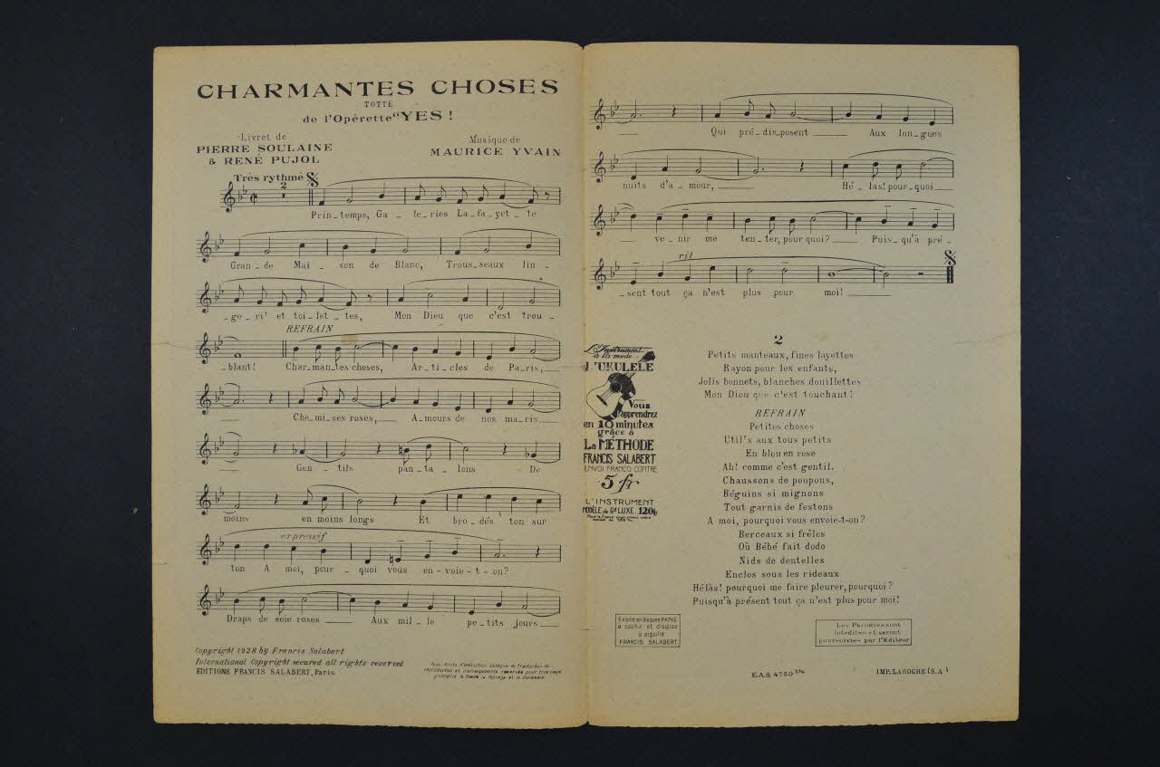 chanson, partition de musique, petit format, Charmantes choses, Yes !